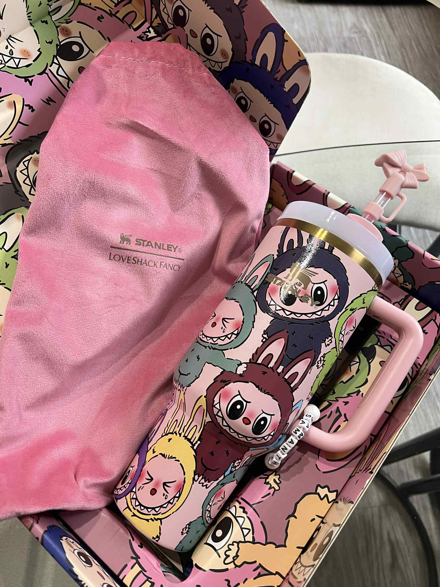 ✨ 40 oz Labubu-Inspired Stanley Tumbler Set — With Straw, Topper, Dust Bag & Gift Box ✨