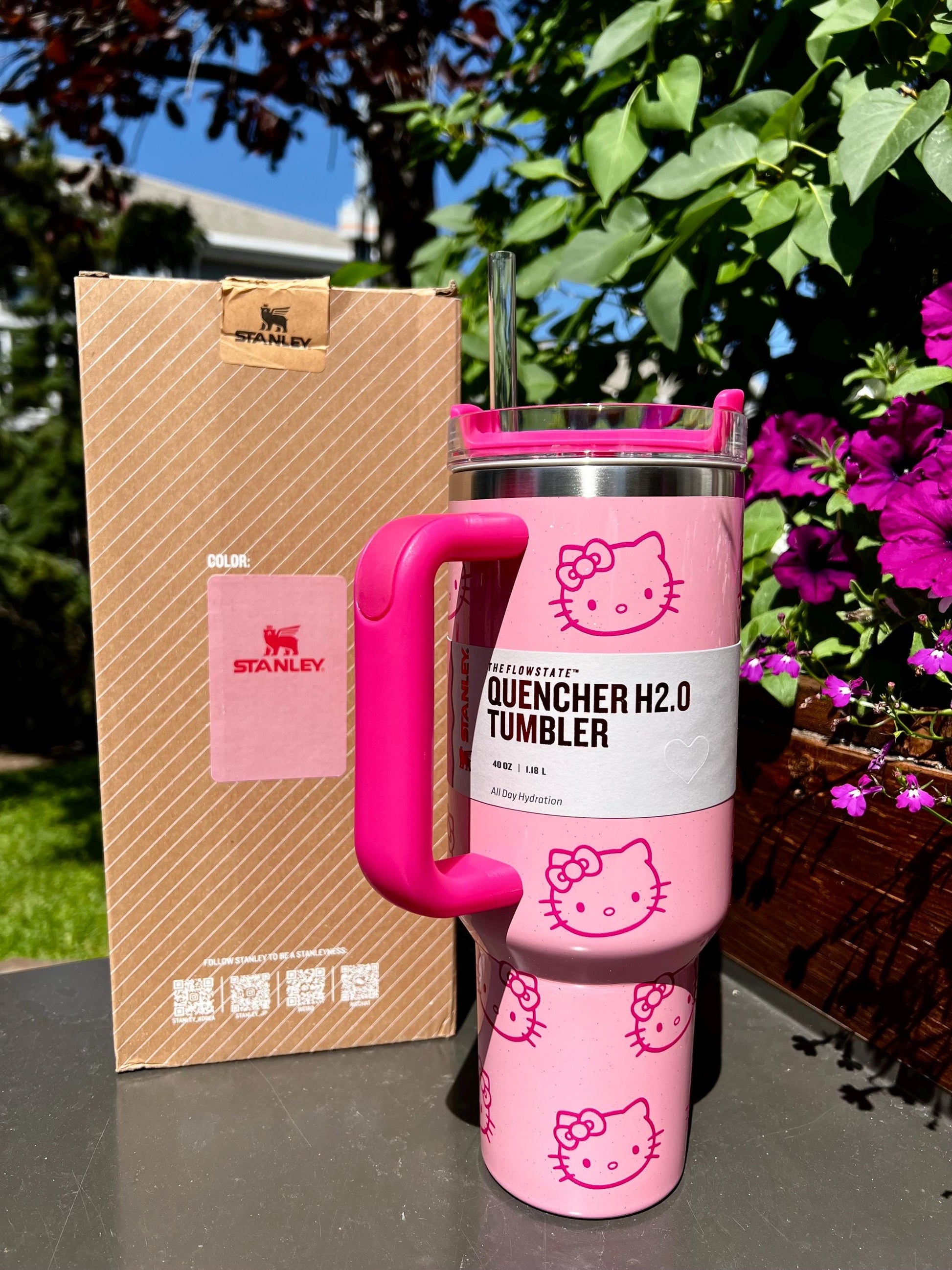 Personalized Name HK super cute Pink Kawaii cat 20 oz/ 40 oz Quencher Birthday gift for teens adults Christmas gift, gift ideas for Kitty lovers, gift basket ideas, Stanley engraved Hello Kitty