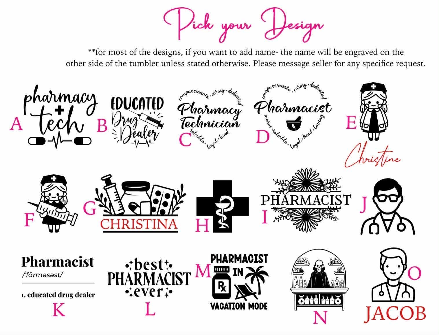 Personalized Pharmacy Technician Pharmacist Tumbler: Engraved Design, 40 oz Gift Travel tumbler
