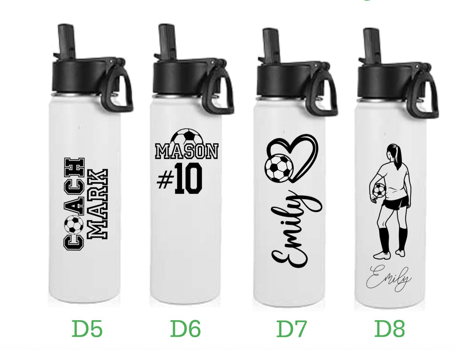 Personalized Soccer Water Bottle: Engraved Stainless Steel Sports Bottle with Straw