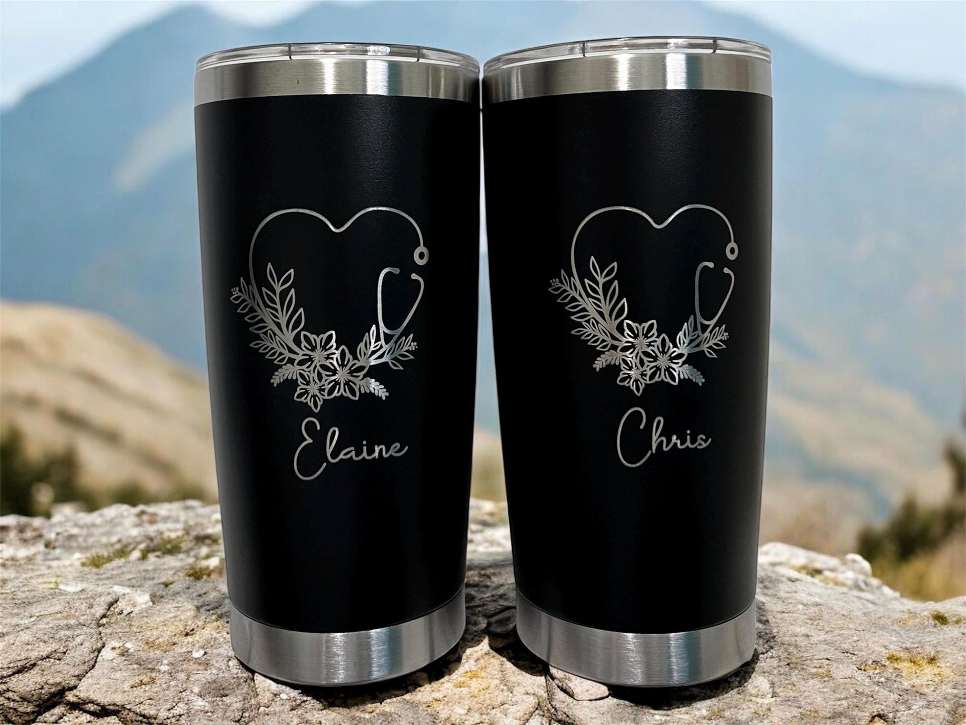 Show your appreciation in style with our 20 oz engraved coffee tumbler, featuring a sleek minimalist stethoscope design — a perfect gift for nurses, doctors, and all healthcare heroes.